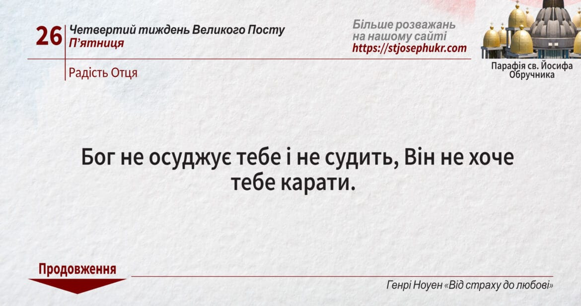 І я тебе не осуджую, іди і більше не гріши (Йо. 8, 3).
