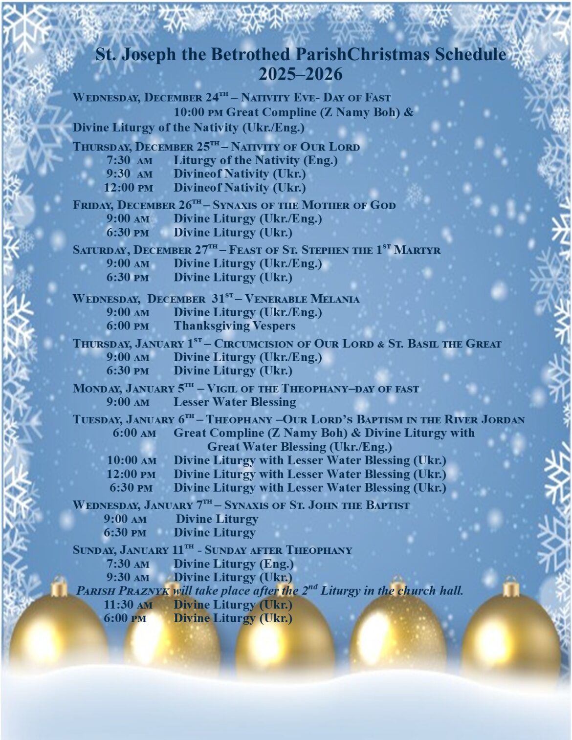 Розпорядок богослужінь на різдвяний період by Natalia 23 Грудня 2025 23 Грудня 2025 506 A+A- Reset 506