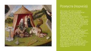 Другою пристрастю є розпуста — невпорядковане прагнення тілесної насолоди. Ця пристрасть особливо небезпечна тим, що може жити у думках людини навіть тоді, коли вона намагається уникати зовнішнього гріха.