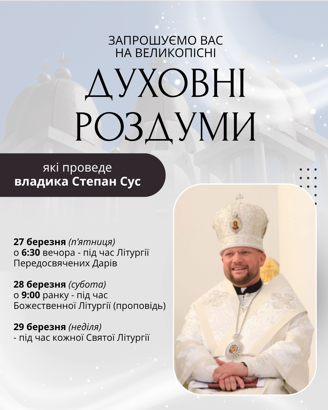 Запрошуємо вас на великопісні духовні роздуми, які проведе