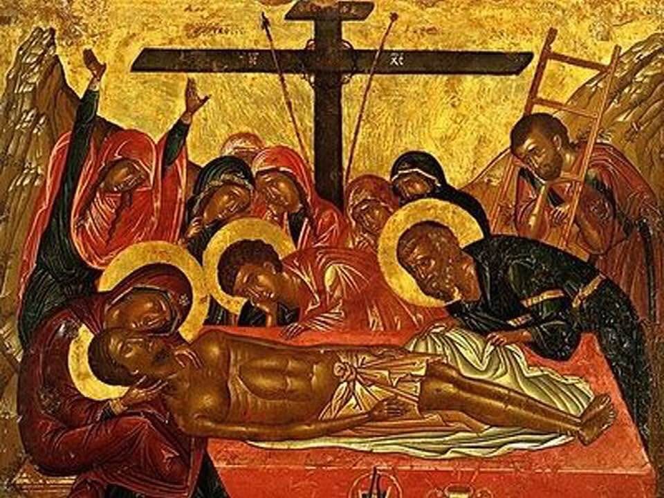 У середині дня (зазвичай о 14 годині) в храмах виноситься Плащаниця, яка символізує Його мертве тіло, а ввечері відбувається поховання.